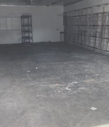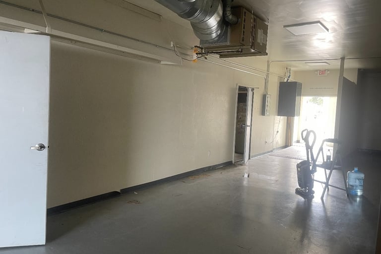 Two different Tenants, one Rents rear cement floor, Open space Double door rear entrance opens to gated Rear Parking/ One Restroom/1,200 sf/ $1,385 Mo Rent